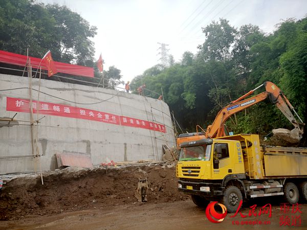 受領(lǐng)道路搶通任務(wù)的中交一公局三公司職工看在眼里,急在心里。他們第一時間集結(jié)挖掘機(jī)、裝載機(jī)、沖擊錘等專業(yè)裝備,沿著塌方體緊急開辟出人行通道,保障臨時通行。并迅速著手清理塌方體“卸載”減負(fù),為砌筑擋墻永久性工程綜合整治做準(zhǔn)備。項目經(jīng)理譚利華帶領(lǐng)技術(shù)人員頂著暴雨踏勘現(xiàn)場,連夜繪制施工設(shè)計圖紙,制定道路搶通方案。