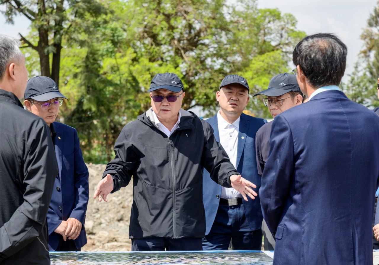 5月22日至24日,中交集團黨委書記、董事長王彤宙在埃塞俄比亞首都亞的斯亞貝巴組織召開公司埃塞國別工作會,采取"四不兩直"的方式調研了亞的斯未來城、大圓廳、查卡公寓等項目,參觀了援埃塞綠色河岸發展項目,并慰問海外項目一線員工。中交集團海外業務部總監唐橋梁,中交一公局集團黨委書記、董事長韓國明參加上述活動。